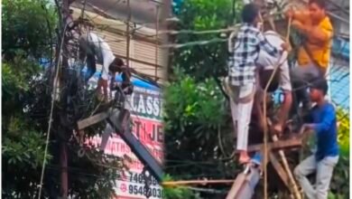 खंभे पर लटक गया लाइनमैन, करंट से बेहोश… अस्पताल ले जाने पर बची जान..