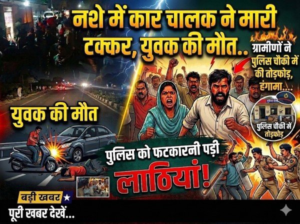 हरिद्वार। नजीबाबाद हाईवे पर बुधवार देर शाम नशे में धुत एक कार चालक ने पैदल जा रहे युवक और एक स्कूटी सवार को टक्कर मार दी। हादसे में एक युवक की मौत हो गई, जबकि दो युवक घायल हो गए। घटना के बाद गुस्साए परिजनों और बस्ती के ग्रामीणों ने चंडीघाट पुलिस चौकी पहुंचकर जमकर हंगामा किया और तोड़फोड़ कर दी। स्थिति बिगड़ने पर पुलिस ने लाठियां फटकार कर लोगों को खदेड़ा।