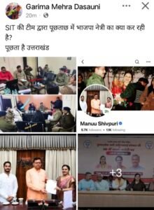 इस पूरे घटनाक्रम को लेकर उत्तराखंड कांग्रेस की प्रदेश प्रवक्ता गरिमा मेहरा दसौनी ने सोशल मीडिया पर भाजपा को घेरा है। उन्होंने सवाल उठाया कि जब मामला अत्यंत संवेदनशील है और जांच चल रही है, तो फिर राजनीतिक पृष्ठभूमि रखने वाली महिला की मौजूदगी किस आधार पर रही।