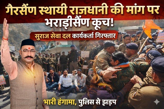 हरिद्वार/गैरसैंण: गैरसैंण को स्थायी राजधानी घोषित करने समेत विभिन्न मांगों को लेकर बुधवार को सुराज सेवा दल के कार्यकर्ताओं ने भराड़ीसैंण कूच किया।