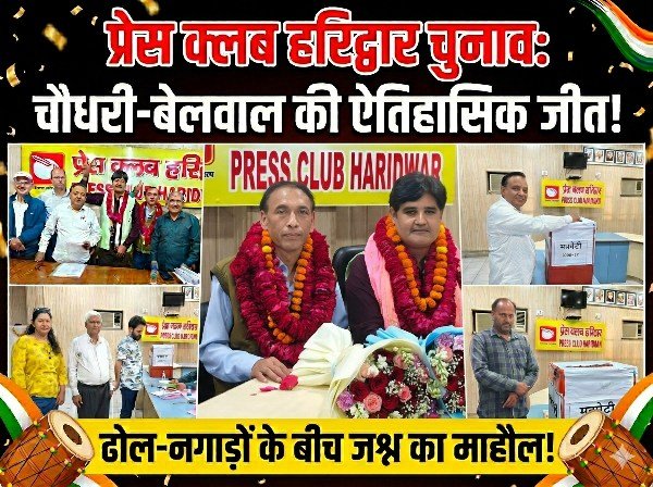 “प्रेस क्लब हरिद्वार चुनाव में चौधरी-बेलवाल की धमाकेदार जीत, ढोल-नगाड़ों के बीच जश्न का माहौल..