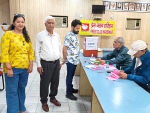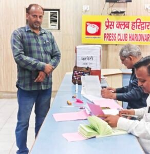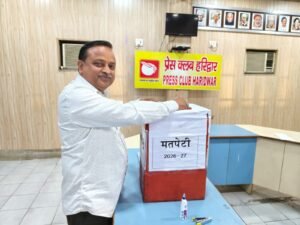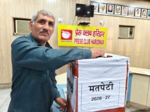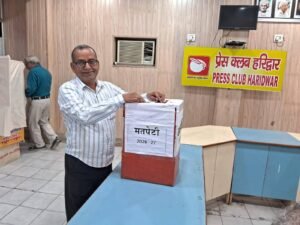 हरिद्वार: प्रेस क्लब (रजि.) हरिद्वार के वार्षिक चुनाव 2026-27 में अध्यक्ष पद पर धर्मेंद्र चौधरी ने 85 वोट प्राप्त कर अश्वनी अरोड़ा (34 वोट) को पराजित किया, जबकि महामंत्री पद पर सूर्यकांत बेलवाल ने 86 मत हासिल कर डॉ. हिमांशु द्विवेदी (34 वोट) को हराया।