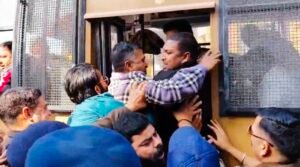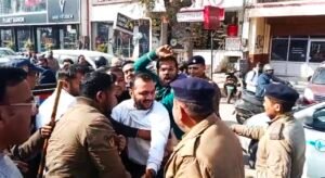 बैरिकेडिंग लगाकर रोकने पर सड़क पर बैठे कार्यकर्ता, धक्का-मुक्की के बाद हिरासत में लिया गया, सीटिंग जज की निगरानी में सीबीआई जांच की मांग..