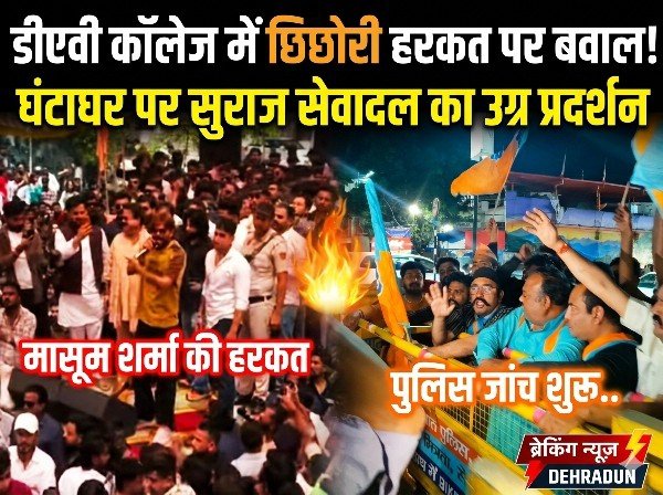देहरादून: डीएवी पीजी कॉलेज के छात्र संघ समारोह में हरियाणवी गायक मासूम शर्मा की छिछोरी हरकत से उठे विवाद ने तूल पकड़ लिया है। सुराज सेवादल अध्यक्ष रमेश जोशी के नेतृत्व में कार्यकर्ताओं ने देर रात घंटाघर पर उग्र प्रदर्शन किया और हरियाणवी गायक मासूम शर्मा के खिलाफ जमकर नारेबाजी कर कार्रवाई की मांग की। प्रदर्शनकारियों ने मंच से कथित अभद्र भाषा और अशोभनीय प्रस्तुति को देवभूमि की सांस्कृतिक गरिमा पर सीधा हमला बताया।