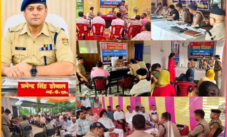 हरिद्वार: एसएसपी प्रमेन्द्र डोबाल के निर्देश पर नगर क्षेत्र के सभी थानों में मंगलवार को थाना दिवस आयोजित किया गया। इस मौके पर एसपी सिटी पंकज गैरोला, एएसपी ज्वालापुर जितेंद्र चौधरी और एएसपी सदर निशा यादव स्वयं विभिन्न थानों में पहुंचे और फरियादियों की समस्याएं सुनीं।