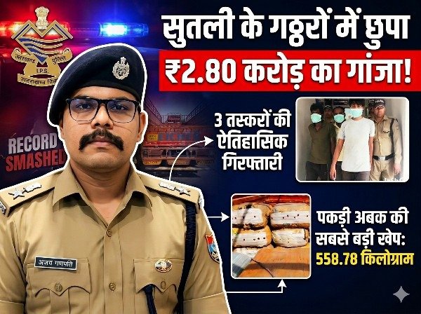 रुद्रपुर/उधमसिंहनगर: “नशा मुक्त देवभूमि” के संकल्प को ज़मीन पर उतारते हुए उधमसिंहनगर पुलिस ने नशा तस्करों के खिलाफ ऐसी ऐतिहासिक कार्रवाई की है, जिसने पूरे प्रदेश में हलचल मचा दी है। सुतली के गट्ठरों के बीच बेहद शातिराना अंदाज़ में छुपाकर लाई जा रही करीब 558.78 किलोग्राम अवैध गांजे की विशाल खेप को पुलिस ने बरामद कर लिया। अंतरराष्ट्रीय बाजार में इसकी कीमत करीब 2 करोड़ 80 लाख रुपये आंकी गई है। इस कार्रवाई को राज्य में अब तक की सबसे बड़ी गांजा बरामदगी माना जा रहा है।एसएसपी अजय गणपति ने प्रेस कॉन्फ्रेंस में खुलासा करते हुए बताया कि मुख्यमंत्री पुष्कर सिंह धामी के “नशा मुक्त देवभूमि” अभियान और जनपद में चलाए जा रहे ऑपरेशन प्रहार के तहत नशा तस्करों के विरुद्ध विशेष अभियान लगातार जारी है। पुलिस अधीक्षक अपराध, एसपी सिटी रुद्रपुर और क्षेत्राधिकारी रुद्रपुर के पर्यवेक्षण में कोतवाली रुद्रपुर पुलिस और एसओजी टीम द्वारा संयुक्त सघन चेकिंग अभियान चलाया गया।