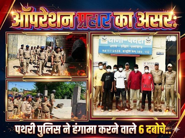 हरिद्वार: जनपद में कानून-व्यवस्था से खिलवाड़ करने वालों के खिलाफ पुलिस का शिकंजा लगातार कसता जा रहा है। पुलिस मुख्यालय स्तर से चलाया जा रहा “ऑपरेशन प्रहार” अब जमीनी स्तर पर असर दिखाने लगा है। इसी कड़ी में थाना पथरी क्षेत्र के सपेरा बस्ती घिस्सुपुरा में सत्यापन अभियान के दौरान हंगामा करने की कोशिश करने वाले 6 लोगों को पुलिस ने मौके से हिरासत में ले लिया।वरिष्ठ पुलिस अधीक्षक नवनीत सिंह भुल्लर के निर्देश पर जनपदभर में चलाए जा रहे विशेष अभियान के तहत संदिग्ध व्यक्तियों व किरायेदारों का सत्यापन किया जा रहा है।
