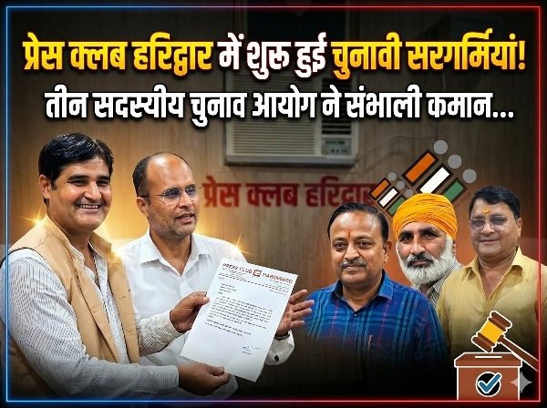 हरिद्वार: प्रदेश के व्यवस्थित और सक्रिय प्रेस क्लबों में शुमार हरिद्वार प्रेस क्लब हरिद्वार के वार्षिक चुनाव की औपचारिक घोषणा के साथ ही क्लब परिसर में चुनावी सरगर्मियां तेज़ हो गई है। गुरुवार को मुख्य चुनाव अधिकारी प्रदीप गर्ग के नेतृत्व में तीन सदस्यीय चुनाव आयोग ने विधिवत कार्यभार ग्रहण कर लिया। कार्यभार संभालने के बाद चुनाव कार्यालय में व्यवस्थाओं को अंतिम रूप दिया गया। मुख्य चुनाव अधिकारी प्रदीप गर्ग ने बताया कि सहायक चुनाव अधिकारी के रूप में मनोज कुमार सोही और लव शर्मा चुनाव प्रक्रिया को संपन्न कराएंगे। नामांकन से लेकर मतदान और मतगणना तक की पूरी प्रक्रिया पारदर्शी और निष्पक्ष ढंग से कराने के लिए विस्तृत कार्ययोजना तैयार की जा रही है।