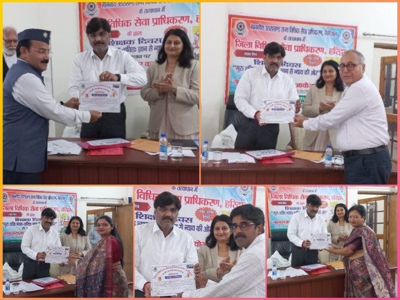 हरिद्वार: उत्तराखंड राज्य विधिक सेवा प्राधिकरण, नैनीताल के निर्देशानुसार और जनपद न्यायाधीश की अध्यक्षता में आज 25 सितंबर 2025 को जिला विधिक सेवा प्राधिकरण हरिद्वार के सभागार में “गुरू शक्ति, न्याय शक्ति, ज्ञान से न्याय की ओर” अभियान के तहत कार्यक्रम आयोजित किया गया।कार्यक्रम में जिला जज नरेंद्र दत्त ने स्कूल, कॉलेज, महाविद्यालय, विश्वविद्यालय और अन्य विभागों से आए गणमान्य व्यक्ति व शिक्षक गण को प्रमाण पत्र देकर सम्मानित किया। उन्होंने समाज में गुरुजनों के महत्व पर जोर देते हुए कहा कि गुरु के बिना जीवन में ज्ञान प्राप्त करना कठिन है। बच्चों के संपूर्ण विकास के लिए शिक्षा और न्याय दोनों ही महत्वपूर्ण अधिकार हैं, जिन्हें शिक्षकगण सुनिश्चित करते हैं।कार्यक्रम के अंत में सचिव सिमरनजीत कौर ने जिला विधिक सेवा प्राधिकरण के अंतर्गत विद्यालयों में स्थापित बाल न्याय क्लब और महाविद्यालयों में कार्यरत लीगल एड क्लिनिक के विषय में जानकारी साझा की। उन्होंने अधिक से अधिक विद्यालयों में इन क्लबों की स्थापना करने का आवाहन किया और कार्यक्रम में आए सभी प्रतिभागियों को धन्यवाद दिया। कार्यक्रम का संचालन रमन कुमार सैनी, एडवोकेट (डिप्टी एलएडीसी) ने किया।