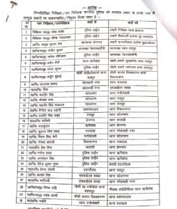 जिसके तहत दो इंस्पेक्टर और 28 सब इंस्पेक्टरों की जिम्मेदारियां बदल दी गई। तेज़ तर्रार इंस्पेक्टर नरेश राठौर को प्रेमनगर कोतवाली प्रभारी बनाया गया।