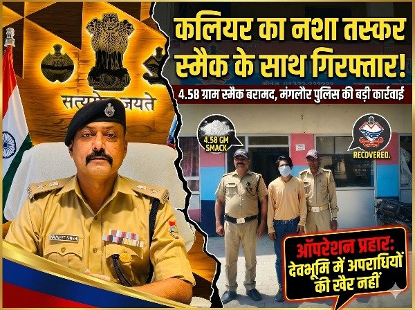 रूड़की: नशे के खिलाफ चल रहे “ऑपरेशन प्रहार” के तहत मंगलौर पुलिस ने सफलता हासिल करते हुए कलियर क्षेत्र के एक नशा तस्कर को गिरफ्तार कर लिया। पुलिस ने आरोपी के कब्जे से 4.58 ग्राम अवैध स्मैक बरामद की है। इस कार्रवाई से पुलिस की सख्ती का साफ संदेश गया है कि नशे के कारोबारियों को किसी भी सूरत में बख्शा नहीं जाएगा।