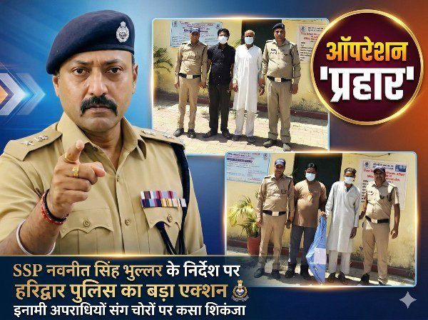 हरिद्वार: जनपद हरिद्वार में ऑपरेशन प्रहार के तहत पथरी पुलिस का एक्शन लगातार तेज होता जा रहा है। एक तरफ जहां पांच-पांच हजार के दो इनामी आरोपियों को गिरफ्तार कर पुलिस ने बड़ी सफलता हासिल की, वहीं दूसरी ओर चोरी की वारदात का खुलासा करते हुए दो चोरों को दबोचकर चोरी की मोटर, आरा और नगदी भी बरामद कर ली गई। ताबड़तोड़ कार्रवाई से इलाके में अपराधियों के बीच हड़कंप मचा हुआ है।