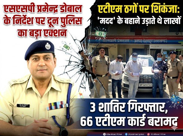 देहरादून: “ऑपरेशन प्रहार” के तहत दून पुलिस ने एटीएम ठगी करने वाले एक संगठित गिरोह का भंडाफोड़ करते हुए तीन शातिर आरोपियों को गिरफ्तार किया है। ये आरोपी एटीएम पर पैसे निकालने आए भोले-भाले और बुजुर्ग लोगों को निशाना बनाते थे और मदद के बहाने उनका पिन जानकर एटीएम कार्ड बदलकर लाखों रुपये पार कर देते थे। पुलिस ने इनके कब्जे से अलग-अलग बैंकों के 66 एटीएम कार्ड और घटना में प्रयुक्त एक कार बरामद की है।