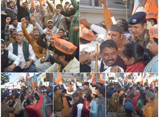 कार्यालय से बाहर निकलते ही पुलिस ने उन्हें रोक लिया। इस पर कार्यकर्ता सड़क पर ही धरने पर बैठ गए और जमकर नारेबाजी की।