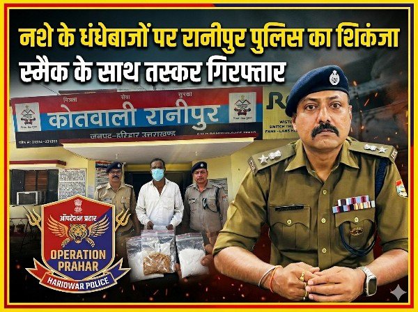 वरिष्ठ पुलिस अधीक्षक नवनीत सिंह भुल्लर के निर्देश पर चलाए जा रहे ऑपरेशन प्रहार के तहत हरिद्वार पुलिस लगातार नशा तस्करों के खिलाफ सख्त अभियान चला रही है। इसी क्रम में कोतवाली रानीपुर पुलिस ने चेकिंग के दौरान बड़ी कार्रवाई को अंजाम दिया।