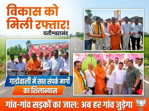 पथरी: हरिद्वार ग्रामीण क्षेत्र में विकास कार्यों को गति देते हुए भाजपा के प्रदेश उपाध्यक्ष एवं पूर्व कैबिनेट मंत्री स्वामी यतीश्वरानंद ने ग्राम गाडोवाली में सात सड़कों के निर्माण कार्य का विधिवत शुभारंभ किया। फीता काटकर और नारियल फोड़कर शुरू किए गए इन कार्यों से क्षेत्रवासियों को बेहतर संपर्क मार्ग उपलब्ध होंगे, जिससे आवागमन और ग्रामीण अर्थव्यवस्था को मजबूती मिलने की उम्मीद है।
