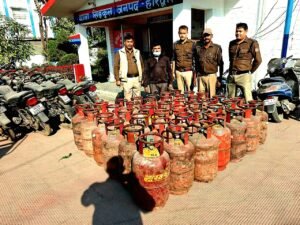 इसी क्रम में सिडकुल कोतवाली प्रभारी नितेश शर्मा के नेतृत्व में पुलिस टीम को खुफिया सूत्रों से सूचना मिली कि रोशनपुरी, रावली महदूद क्षेत्र में अवैध LPG सिलेंडरों का भंडारण किया जा रहा है। सूचना की पुष्टि पर वरिष्ठ उप निरीक्षक देवेंद्र तोमर मय चेतक टीम मौके पर पहुंचे। घर की तलाशी लेने पर 50 से 60 सिलेंडर अवैध रूप से भंडारित मिले।