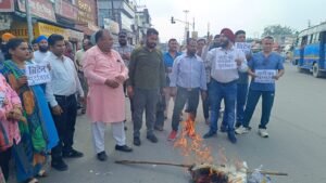 प्रेमनगर क्षेत्र में हुए इस प्रदर्शन के दौरान कार्यकर्ताओं ने हाथों में तख्तियां और बैनर लेकर जमकर नारेबाजी की। “ब्रिटिश सरकार मुर्दाबाद”, “भारतीय अस्मिता का अपमान बर्दाश्त नहीं” जैसे नारों से पूरा इलाका गूंज उठा।