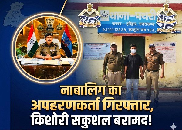 हरिद्वार: थाना पथरी क्षेत्र से बहला-फुसलाकर ले जाई गई नाबालिग किशोरी को पुलिस ने त्वरित कार्रवाई करते हुए सकुशल बरामद कर लिया है। मामले में पुलिस ने आरोपी युवक को भी धर दबोचा है।