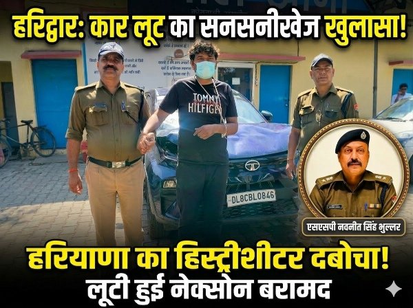 रुड़की: दोस्तों के सामने रुतबा झाड़ने और अपने शौक व नशे की पूर्ति के लिए एक बदमाश ने कार लूट की सनसनीखेज वारदात को अंजाम दे दिया। हालांकि हरिद्वार पुलिस की मुस्तैदी के आगे उसकी चालाकी ज्यादा देर नहीं चल सकी और पुलिस ने महज 24 घंटे के भीतर घेराबंदी कर मुख्य आरोपी को दबोच लिया। पुलिस ने उसके कब्जे से लूटी हुई नेक्सोन कार भी बरामद कर ली है।एसएसपी नवनीत सिंह भुल्लर के निर्देश पर चला अभियान….