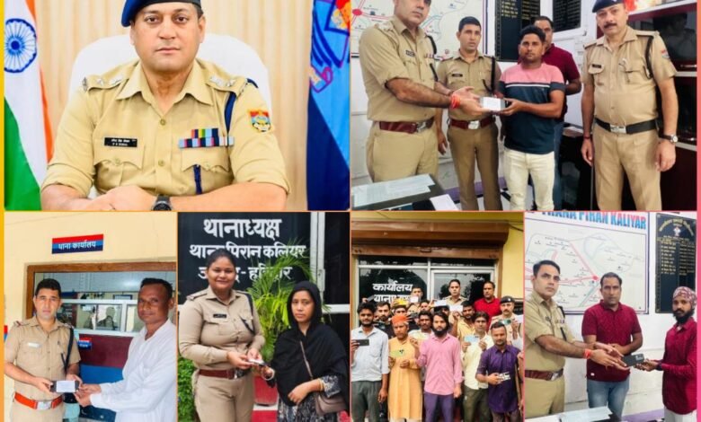 पिरान कलियर: नवरात्रों के शुभ अवसर पर हरिद्वार पुलिस ने लोगों को बड़ी सौगात दी है। लंबे समय से अपने खोए मोबाइल फोन वापस पाने की उम्मीद छोड़ चुके मोबाइल स्वामियों के चेहरों पर मुस्कान लौटा दी गई। पुलिस की इस पहल ने जहां लोगों को राहत दी, वहीं हरिद्वार पुलिस की छवि को भी और मजबूत किया।एसएसपी हरिद्वार प्रमेन्द्र सिंह डोबाल के निर्देश पर चलाए जा रहे “ऑपरेशन रिकवरी” अभियान के तहत पुलिस लगातार उल्लेखनीय सफलताएँ हासिल कर रही है। खोए और चोरी हुए मोबाइल फोनों की बरामदगी के लिए एसएसपी ने सीईआईआर पोर्टल पर प्राप्त शिकायतों पर त्वरित कार्रवाई के निर्देश दिए थे।इसी कड़ी में थाना पिरान कलियर पुलिस ने थानाध्यक्ष रविन्द्र कुमार के नेतृत्व में बड़ी सफलता हासिल की। पुलिस टीम ने सीईआईआर पोर्टल की मदद से ₹8 लाख 11 हज़ार कीमत के कुल 44 मोबाइल फोन बरामद किए। मोबाइल प्राप्त कर स्वामियों की खुशी देखते ही बन रही थी। खोए मोबाइल लौटाए जाने पर मोबाइल स्वामियों ने हरिद्वार पुलिस का तहे दिल से आभार जताया। उन्होंने कहा कि यह काम वाकई उम्मीद से बढ़कर है और पुलिस की मेहनत व ईमानदारी की मिसाल है। टीम में एसएसआई बीएस चौहान, हेडकांस्टेबल सोनू चौधरी, जमशेद अली, कुमपाल तोमर, जितेंद्र कुमार, नीरज राणा आदि शामिल रहे।