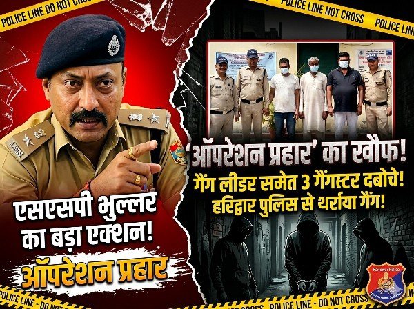 हरिद्वार: जनपद में अपराधियों के खिलाफ छेड़े गए “ऑपरेशन प्रहार” का असर अब साफ नजर आने लगा है। हरिद्वार पुलिस की ताबड़तोड़ कार्रवाई से गैंगस्टरों में खौफ का माहौल है। इसी क्रम में थाना पथरी पुलिस ने बड़ी सफलता हासिल करते हुए कुख्यात गैंग लीडर भूरा उर्फ बबलू समेत तीन गैंगस्टरों को दबोच लिया। खास बात यह है कि भूरा उर्फ बबलू पूर्व में पुलिस मुठभेड़ के बाद जेल भी जा चुका है।