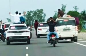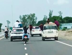 रविवार को वायरल हुए वीडियो में कुछ युवक चलती कार की छत और खिड़कियों से बाहर निकलकर स्टंट करते हुए नजर आए। कारें और मोटरसाइकिलें तेज रफ्तार से चल रही थीं और बीच सड़क पर रुक-रुककर हुल्लड़बाजी की जा रही थी। इस दौरान राहगीरों को भी भारी असुविधा का सामना करना पड़ा।पुलिस ने 5 युवकों को लिया हिरासत में, वाहन किए सीज…..