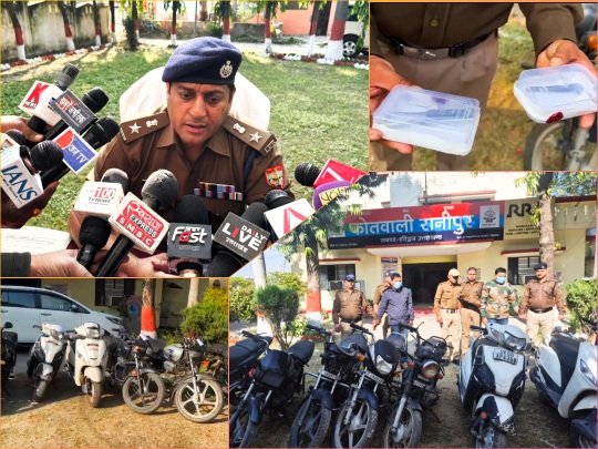 गोपनीय सूचना पर न्यू शिवालिक नगर टिहरी विस्थापित क्षेत्र में पुलिस टीम ने दबिश देकर दो संदिग्ध— सुमित चौहान, निवासी अतरौली, गाजियाबाद, अजीजुर्रहमान उर्फ रहमान मलिक, निवासी रामपुर को दबोच लिया। इनके कब्जे से मु0अ0सं0 459/25 और 462/25 से संबंधित दोनों पल्सर बाइकें भी बरामद हुईं।पूछताछ में आरोपियों ने खुलासा किया कि वे मस्ट्र-की की मदद से वाहन चोरी करते थे और नेपाल में ऊंची कीमतों पर बेच देते थे। आरोपियों की निशानदेही पर ज्वालापुर नहर पटरी के एक खंडहर पड़े भवन से 08 और चोरी की बाइक/स्कूटी बरामद की गईं।